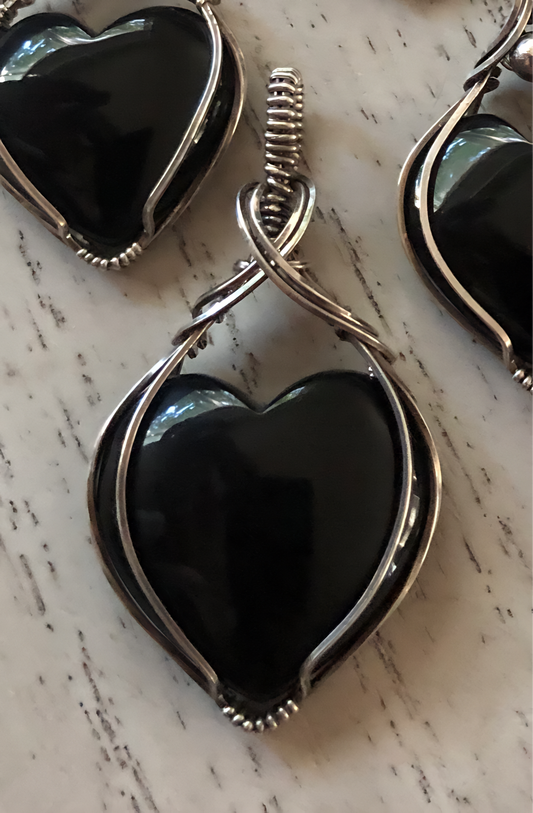 Black Onyx Heart Minimalist Antiqued Sterling Silver Necklace